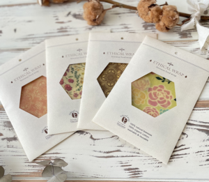 蓋の部分には一部エシカルラップの端切れをアップサイクル。